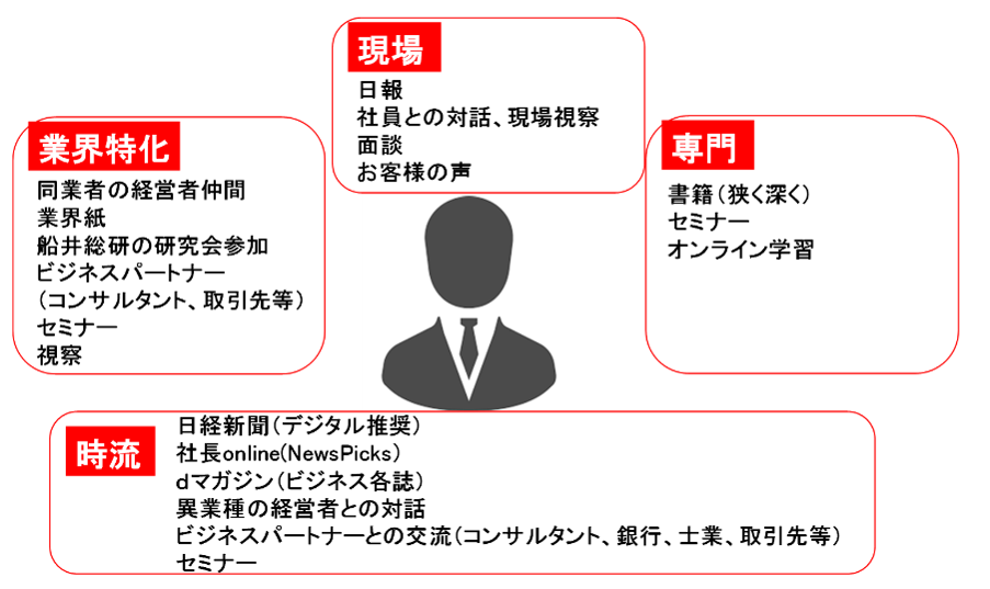 読書やビジネスメディアなどの情報は得た上で、さらに、一次情報も積極的に取りに行こうという姿勢が見て取れます。