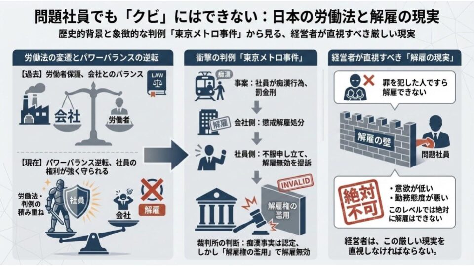 会社の信用を地に落とす行為で有罪になった社員ですら、簡単にはクビにできない。これが日本の裁判所が下した『解雇の現実』です。