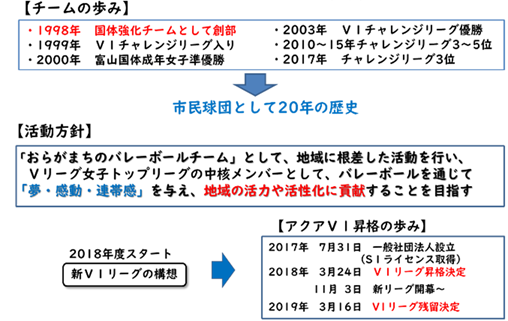 それ以来アクアフェアリーズはV1(チャレンジ)リーグに加入して、とやま国体以降も地域密着型のバレーボールチームとして活動を続けています。